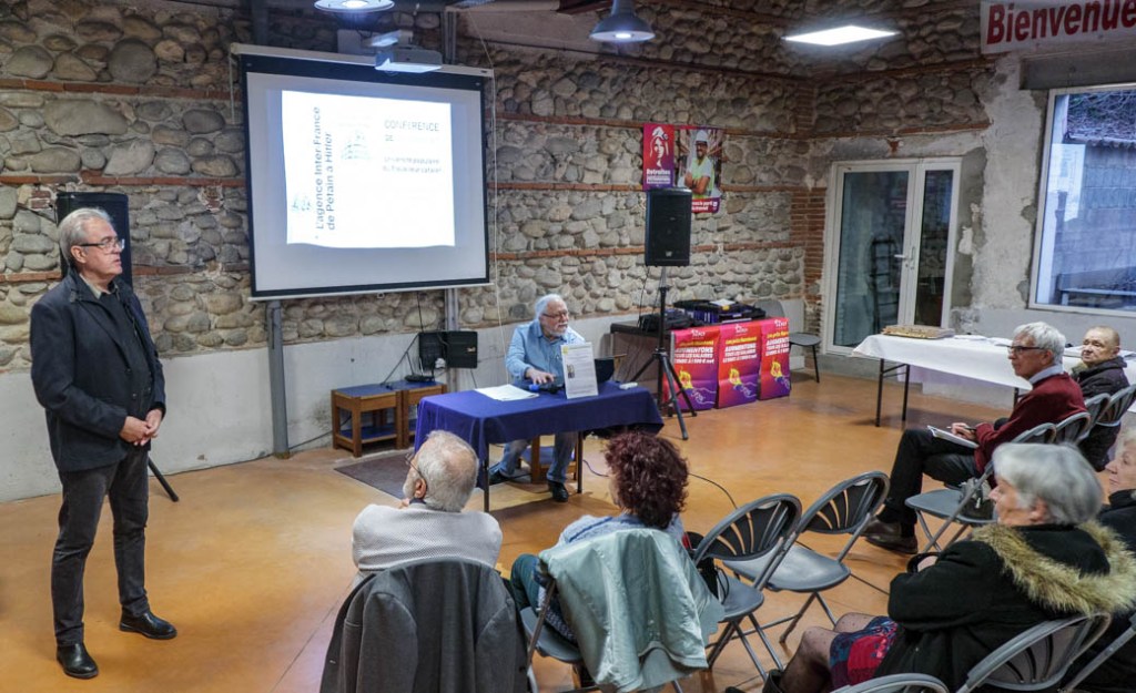 L’historien Gérard Bonet pendant sa conférence à l’Université Populaire du Travailleur Catalan