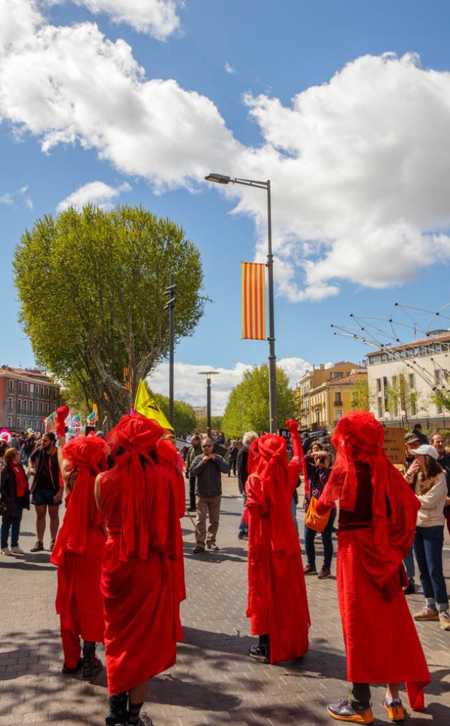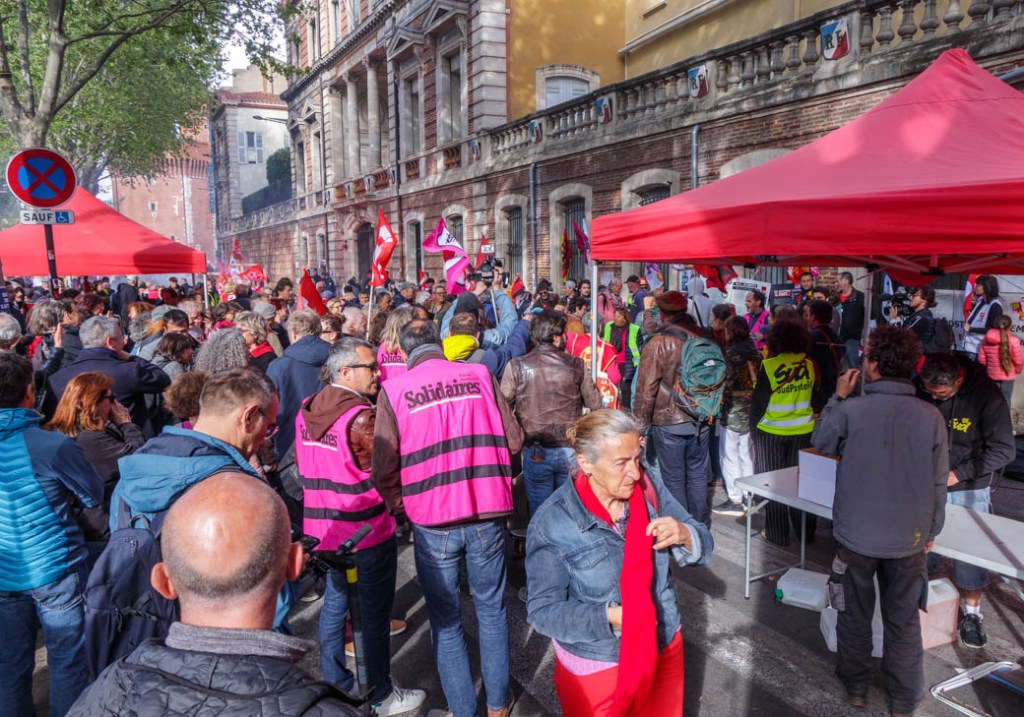 Moins de monde que d’habitude à la manifestation de ce matin. On ne peut pourtant pas dire que la détermination faiblit. Chacun est suspendu à la décision que doit prendre demain le Conseil constitutionnel. Validera-t-il le projet de loi non votée au Parlement ? La censurera-t-il ? Donnera-t-il son feu vert au référendum d’initiative partagée ? Une certaine lassitude est palpable dans le cortège. Pas désabusés les opposants mais meurtris par la violence de cette lutte. Violence de la réforme elle-même. Violence de la manière dont elle a été portée devant les députés et les sénateurs. Violence du processus parlementaire dévoyé, du débat tronqué, du mépris des syndicats et du peuple clamant son refus depuis trois mois maintenant, violence des gaz lacrymogène, des tirs de LBD, des Brav-M. La violence règne partout dans l’espace public. C’est la méthode ultime de l’Etat libéral pour imposer ses diktats. La République vacille sur ses bases démocratiques. Et cette sourde inquiétude qui monte : l’extrême-droite de plus en plus proche du pouvoir.