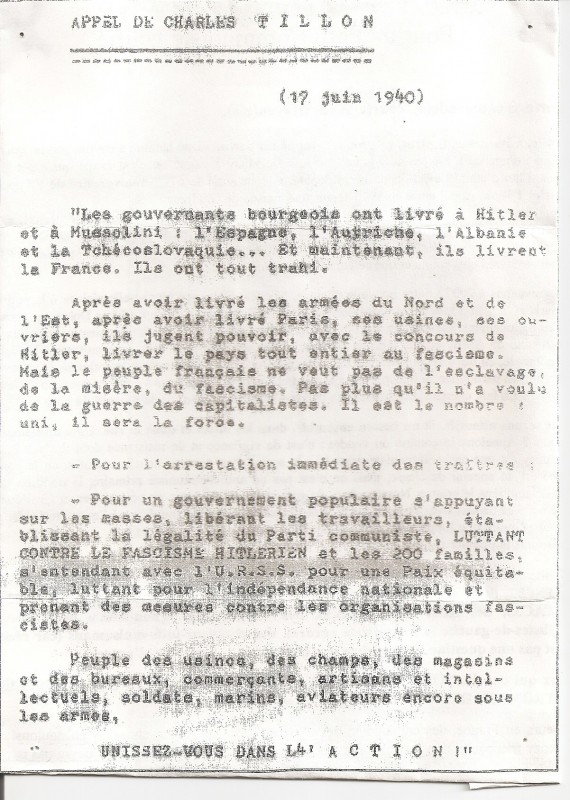 Appel de Charles Tillon