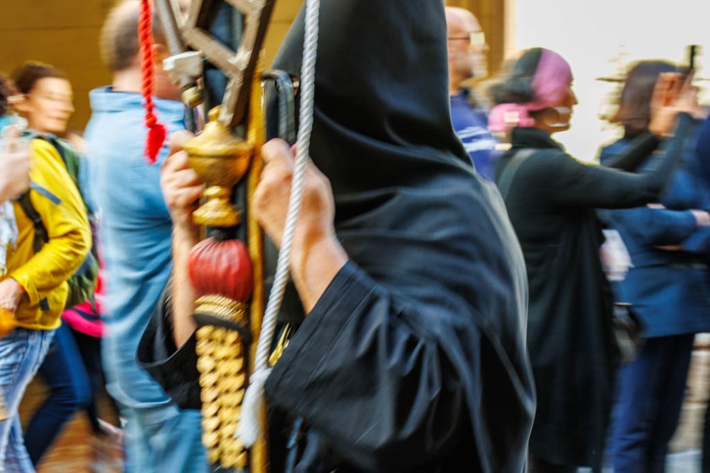 Le plus cocasse, dans la procession de la Sanch qui avait lieu cet après-midi et sur le passage de laquelle le piéton ordinaire se retrouve malgré lui projeté plusieurs siècles en arrière, est la colère de cette jeune femme coincée dans les ralentissements provoqués par le cortège et les badauds qui l’accompagnent, s’en prenant à ces manifestants contre la réforme des retraites qui décidément l’excèdent, elle qui bien sûr travaille et doit penser qu’elle est la seule à se lever chaque jour à cinq heures pendant que tous ces « fainéants de fonctionnaires » (sic) prennent un malin plaisir à la freiner dans sa marche.
