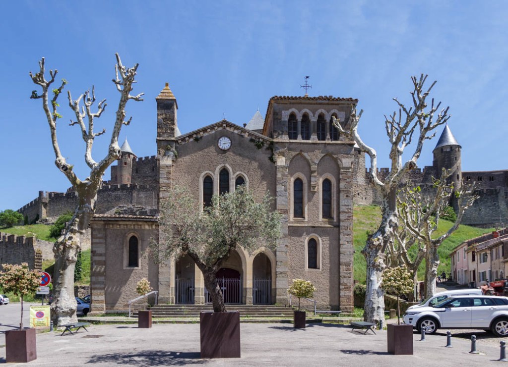 Eglise Saint-Gimer vue de la rue Barbacane – Carcassonne – 14 h 12.Chateau comtal vu de la place Saint-Gimer – Cité de Carcassonne – 14 h 14.