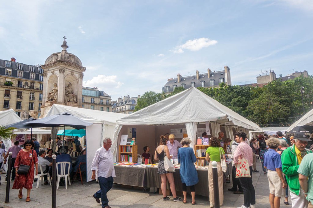 Le Marché de la Poésie se tient comme tous les ans place Saint-Sulpice. Jusqu’à dimanche, les poètes s’assiéront sagement aux tables de leurs éditeurs. Ils se protègeront comme ils peuvent de la chaleur étouffante. Ils regarderont, curieux et amusés, déambuler les passants. Les uns comme les autres peineront à engager une conversation qui viendra ou ne viendra pas. Il y aura de la timidité dans l’air humide. De la pudeur. Des rires. Des accolades. Observant ce manège, son côté enfantin, je me dis que si ce lieu n’existait pas, il manquerait au pays du poème les mots qui le désignent et lui donnent sa respiration.
