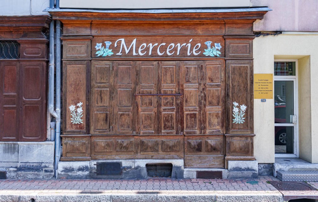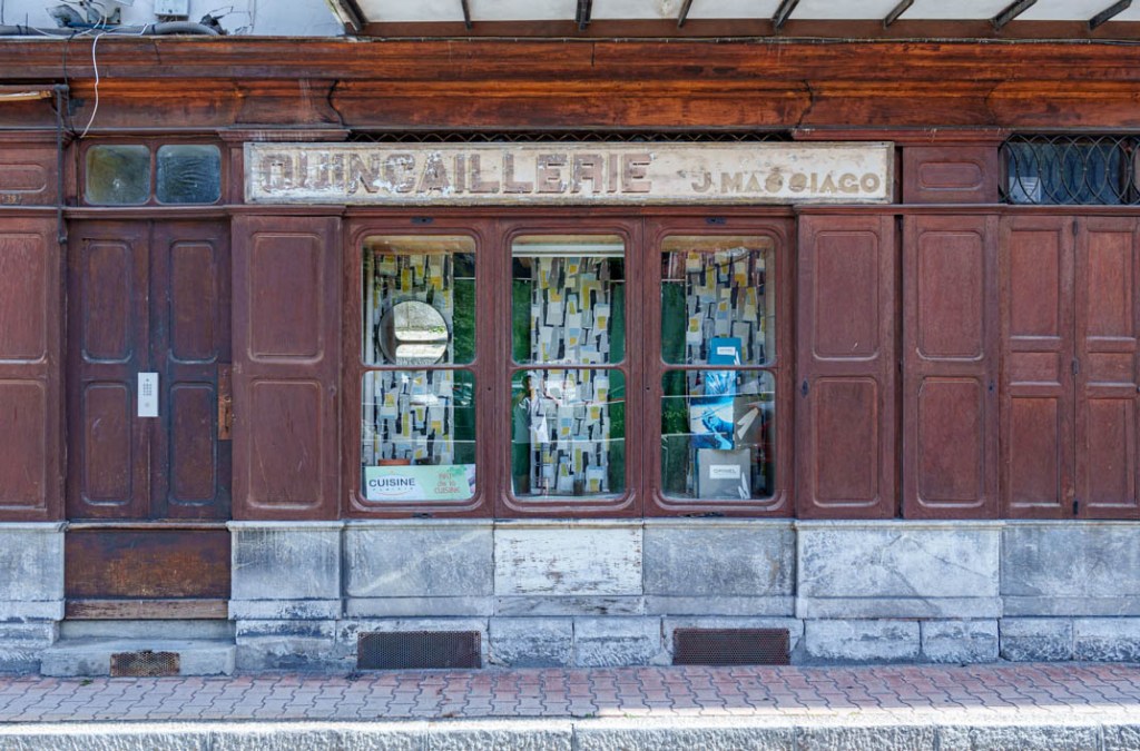 Quincaillerie. Quai de la République. Moûtiers. 11 h 26.Mercerie. Quai de la République. Moûtiers. 11 h 27.L’Isère à Moûtiers. 13 h 37.