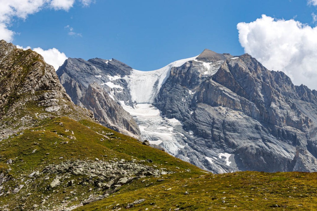 Cette photographie raconte la fin d’une histoire. Le glacier que l’on voit ici est un vestige. C’est tout ce qui reste de la partie médiane du glacier du Vallonet dont ne subsistent dans sa partie amont que quelques névés. Le glacier de la Patinoire, du nom du lac dans lequel il vient mourir, est un reliquat en train de disparaître sous l’effet du réchauffement climatique. Il règne en ce lieu un grand silence. L’atmosphère y est au recueillement pour les randonneurs qui, depuis le parking des Fontanettes à Pralognan-la-Vanoise, en entreprennent l’ascension. Ce jeudi 24 août, nous sommes quelques-unes et quelques-uns à quitter le GR 55 qui mène au très couru Lac des Vaches pour venir contempler ce qui dans peu de temps ne sera plus et mesurer, par là même, tout le mal que l’Homme inflige à la planète. Le lac de la Patinoire est un site difficile d’accès donc peu fréquenté. Après avoir grimpé 810 mètres de dénivelé sur un parcours long de 6 800 mètres, vous vous y sentez submergé par un sentiment de plénitude. Mais la mort du glacier suscite aussi un irrépressible sentiment de colère mêlé de nostalgie. Et si vous levez les yeux au ciel, vous n’admirez pas seulement la prestance des bouquetins arrimés aux pierriers. Vous le verrez lacéré à son tour par un trafic aérien d’une densité criminelle. Selon France Info, les compagnies aériennes prévoient de transporter quelque 4,35 milliards de passagers en 2023, proche du record de 4,54 milliards établi en 2019. Alors, vous reviendront en mémoire les incantations entonnées au lendemain des confinements de 2020 : plus rien ne serait comme avant, un monde nouveau, plus respectueux et plus solidaire, adviendrait… Ici, à 2 527 mètres d’altitude, quelque chose demeure malgré tout de la beauté fragile et poétique du monde. Mais combien de temps encore résistera-t-elle au grand saccage ?