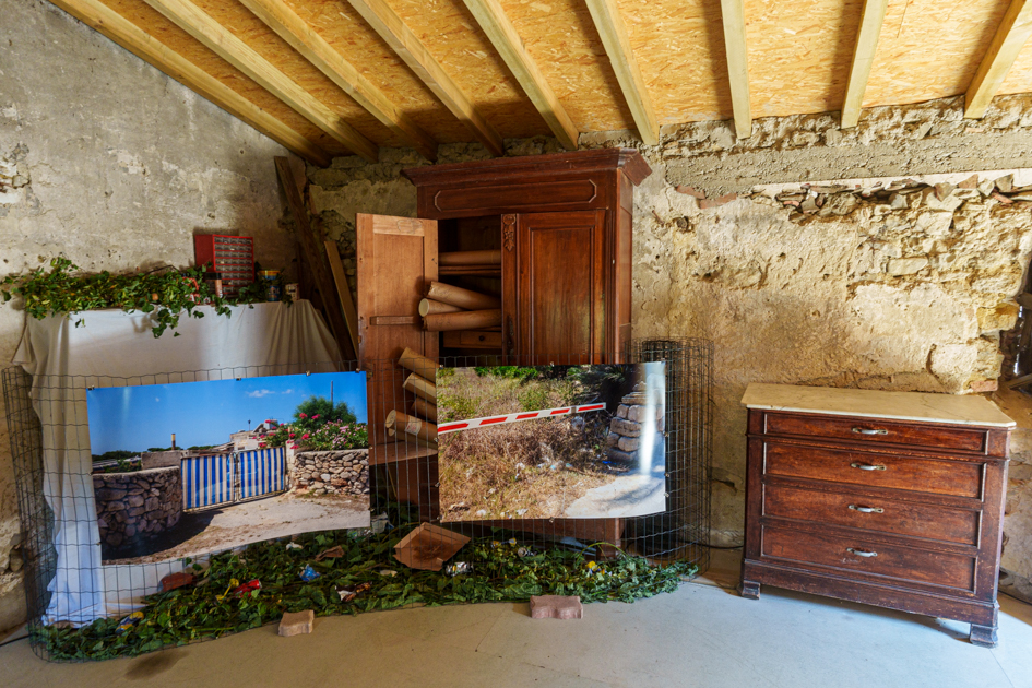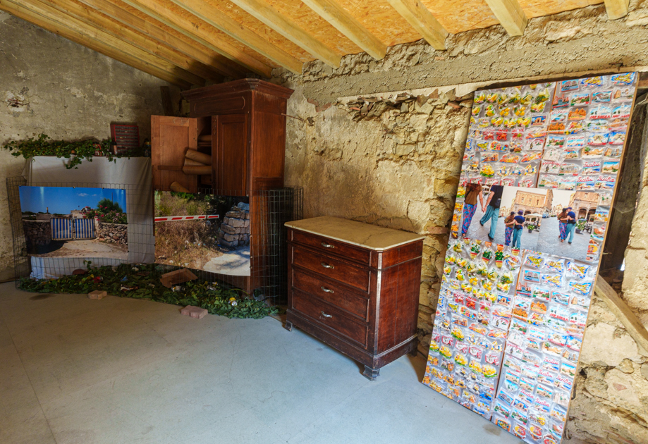 Dans la lumière tamisée du pailler de sa maison familiale transformé en galerie temporaire, la valise est prête. Ne reste plus qu’à pénétrer dans l’antre et se laisser porter par les images épinglées sur les murs ou flottant au plafond. Roman entre dans le présent des lieux qu’il visite par les détails qui le constituent : une inscription sur un mur, un objet abandonné, une scène de rue en apparence anodine, un horizon…