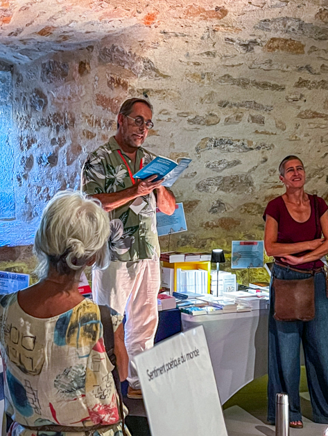 Un rituel au Banquet du livre de Lagrasse : chaque soir autour de 18 h 45, autrices ou auteurs sont invités à tour de rôle à « crier » un livre dans la librairie Ombres Blanches. Beaucoup de monde se presse dans le cellier des moines pour ce moment particulier qu’est la criée. Cinq minutes pour faire aimer un livre, le partager : quelque chose de l’esprit Banquet se dit là, avec toujours beaucoup de flamme et de conviction.