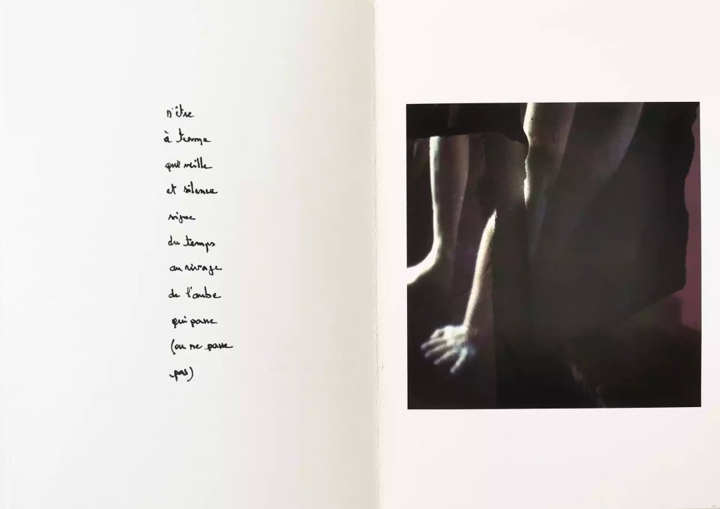 Ce poème a été écrit pour la collection Fragment du livre composée de 59 livres manuscrits par 59 poétesses et poètes avec des photographies de Sylvie Tubiana, conceptrice et réalisatrice du projet. Une vue d’ensemble de la collection en ligne ici.