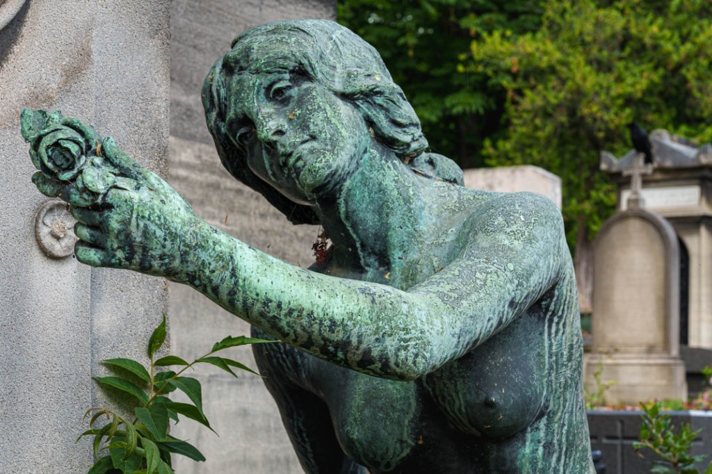 C’est un dimanche ordinaire. Quelques nuages. Pas de pluie. J’ai remonté la rue de la Roquette jusqu’au boulevard de Ménilmontant que je traverse pour accéder à la porte d’entrée principale du cimetière. Aujourd’hui, je me promènerai sans but. J’irai par les allées. Dans ma déambulation, j’espère le moment où je serai comme effacé, fondu dans le paysage, parmi les oubliés, les oiseaux et les ombres.