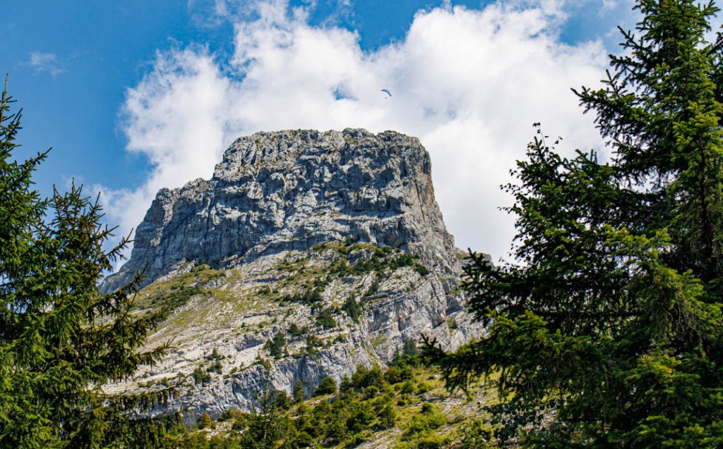 Dans le sillage de l’historien Georges Vigarello et son Histoire des lointains, il faudrait écrire des histoires de confins. Nous y sommes, ce matin, dans un de ces bouts du monde, au départ duquel nous empruntons un chemin qui descend vers le Bois des Ascets (1325 m) avant d’amorcer la montée vers le refuge de la Bombardellaz à travers le Bois Vert. Forêt magnifique. Encore une fois accueillante et bienveillante. Elle nous offre ses ombrages, ses senteurs, humus et résine, quelques framboises sauvages sur le passage. Un vrai bonheur d’être là, parmi les épicéas dont on ne dira jamais assez la majesté. Ce sont des nobles. Ils ont l’élégance des sages. La nature se révèle aussi parfois dans son infini appétit de vivre. Témoin ces jeunes pousses qui s’enracinent sur un tronc que l’on croirait mort et qui pourtant donne encore la vie.