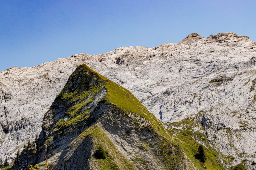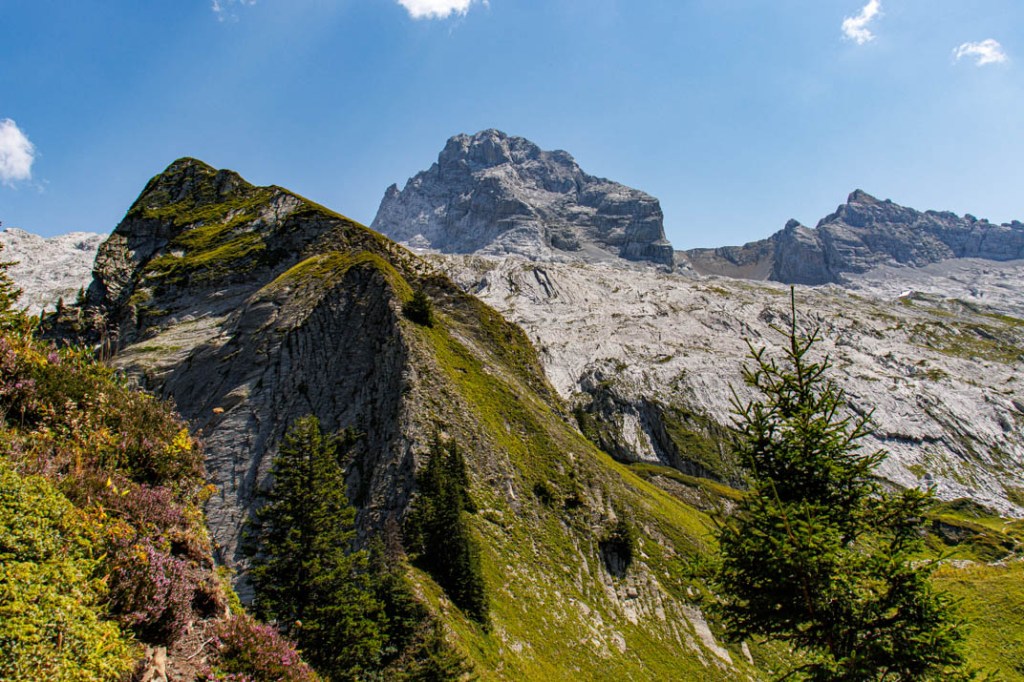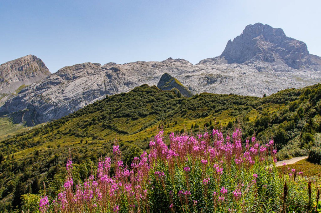 Tout le long de l’itinéraire, se révèle l’harmonie entre le minéral sur les crêtes et le végétal qui tutoie les massifs avant de céder aux blocs de grés et de calcaire. Ils sont au coude à coude et se côtoient sans âpreté ni rudesse. Forêts de chênes et de hêtres au pied des monts, plus haut, les épicéas et les alpages enfin où paissent vaches, moutons et brebis, le tout dans l’unité parfaite des règnes.