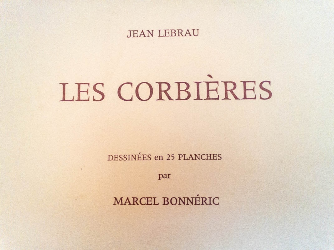 Corbières (histoire d’un livre) – En 1973, le poète Jean Lebrau fait paraître à la librairie Guénégaud, 120 rue de l’Odéon à Paris, un ouvrage d’art intitulé Les Corbières avec vingt-cinq planches dessinées par l’artiste Marcel Bonnéric dont Dunoyer de Segonzac avait fait l’éloge en ces termes : « Vos dessins sont évocateurs d’une région rude, très belle. Ceux que je trouve les plus beaux sont ceux où l’architecture se marie avec la grandeur des paysages… »