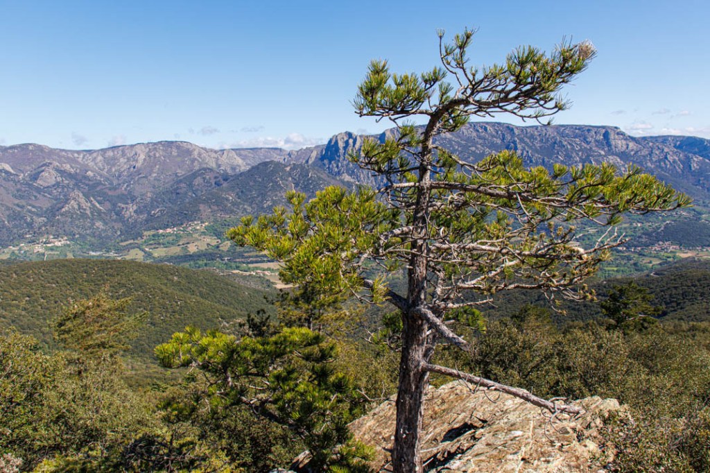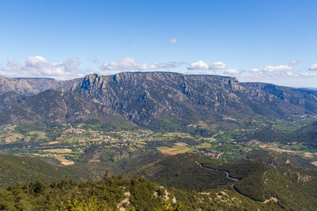 Ce matin, direction le belvédère de Naudech au départ d’Olargues. Le ciel est dégagé. Le vent continue de souffler en rafales. Nous prenons la voiture pour nous épargner une partie du dénivelé. Nous parcourons une quinzaine de kilomètres dans des paysages d’une fascinante sauvagerie. Embrasser du regard une nature épargnée de présence humaine m’apaise, même si notre capacité de nuisance et de destruction m’ôte toute illusion sur l’avenir des chemins que nous empruntons.