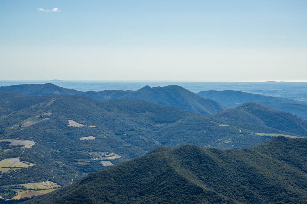 De Naudech on voit la mer. La colline d’Agde. Le mont Saint-Clair. Dans l’arrière-pays, on distingue le Pic Saint-Loup.