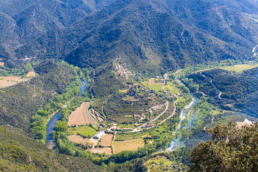 Dans la vallée, le village pittoresque de Vieussan lové dans un méandre de l’Orb. Sur le mamelon, une église dédiée à Saint Martin.