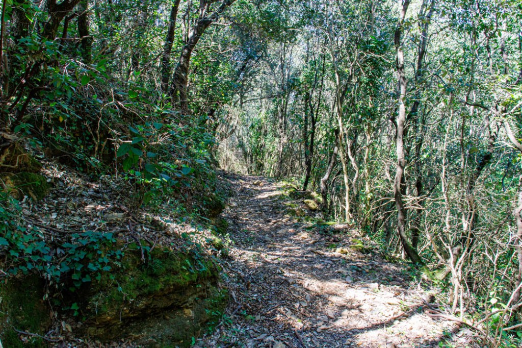 Nous rentrons par le hameau de La Salle en suivant le GR de Pays « Haut-Languedoc et Vignobles », un ancien chemin de transhumance que les hommes avaient empierré. En occitan, on appelle cela une dralha. Me reviennent, tout en marchant, ces deux vers de A mon ostal de la colina, une chanson de Claude Marti : « Nosautres causirèm sens pastre / per qu’una dralha caminar » (Nous choisirons sans guide / par quelle draille cheminer »).