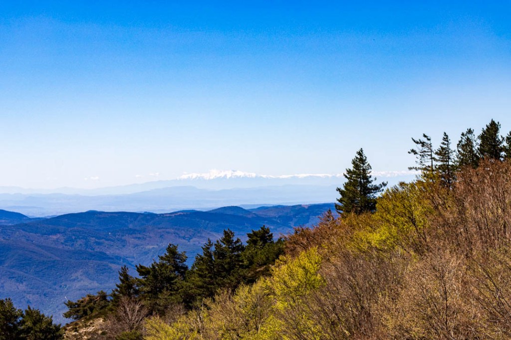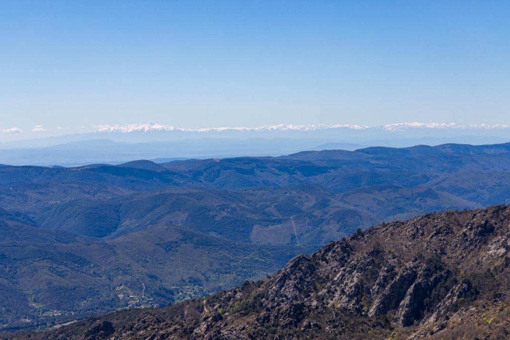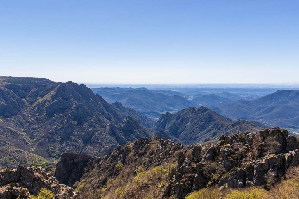 Au départ du hameau de Salvergues, direction La Calmette pour rejoindre le GR de pays Tour de la Montagne du Haute-Languedoc. Grand ciel bleu. Le vent semble vouloir se calmer.
