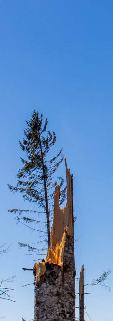 Nous étions prévenus. Nous savions que nous allions traverser un secteur ravagé par la tempête Nils mais le spectacle qui bientôt s’offre à nous dépasse le pire que nous pouvions imaginer. C’est une désolation que cette forêt dévastée. Nous la traversons en silence. Le souffle coupé. Nous formons cortège, comme pour un enterrement. Ecrasés par la violence de l’événement.