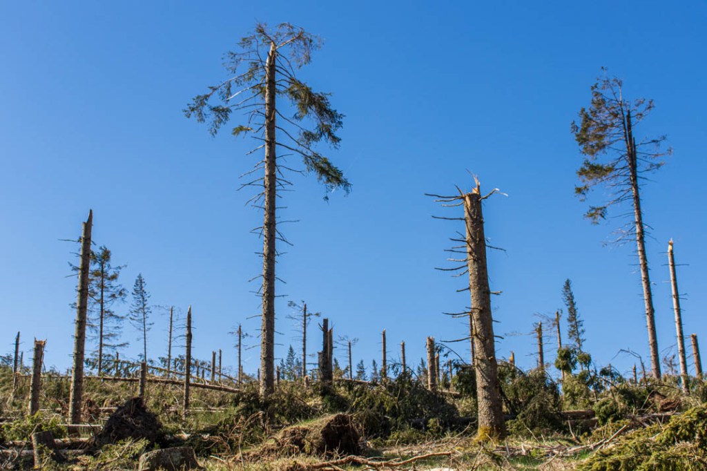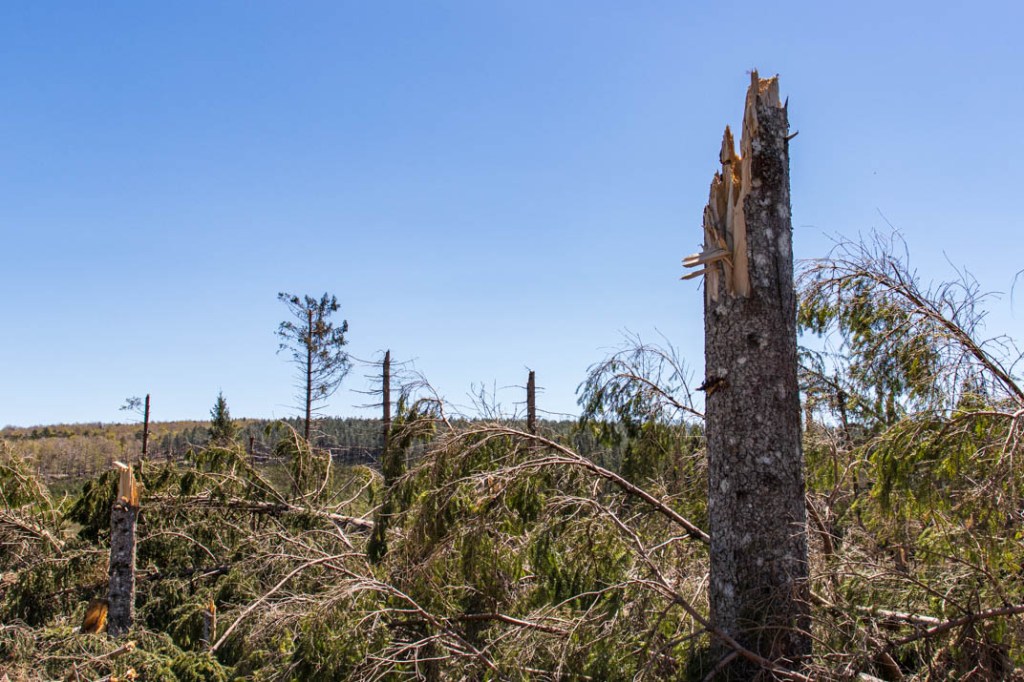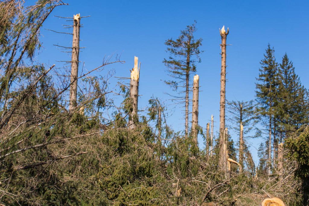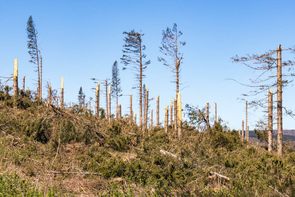 Il a suffi de quelques heures, dans la nuit du 11 au 12 février 2026, pour que des rafales estimées entre 150 et 190 km/h ravagent quelque 80 000 mètres-cubes de conifères qui peuplaient environ 200 hectares du massif forestier de l’Espinouse. Certains observateurs ont comparé le désastre à l’explosion d’une bombe. Des conifères aux racines profondes ont été littéralement décapités quand d’autres ont été déracinés, la tempête transformant la forêt en un vaste cimetière.
